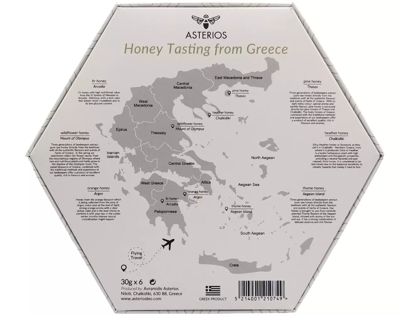 ASTERIOS Premium Greek Honey Gift Box – Luxury Set of 6 Handpicked Honey Varieties from Greece