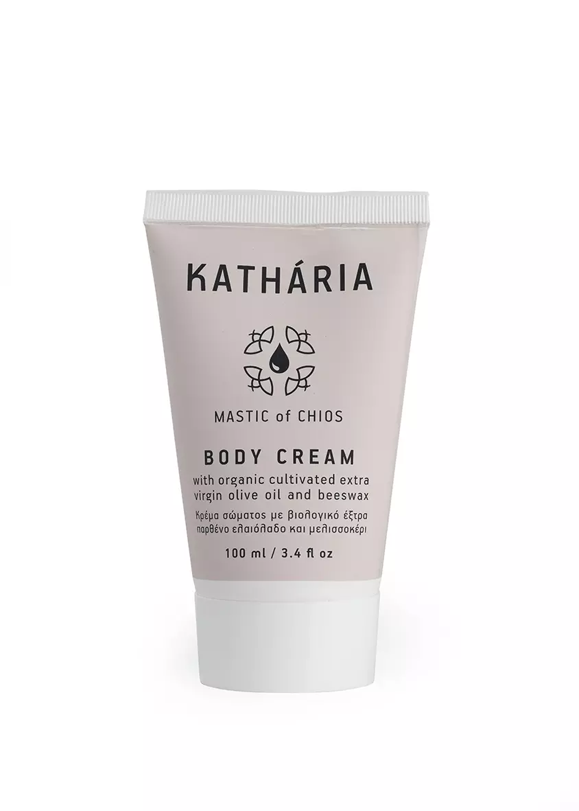 Ανακαλύψτε την KATHÁRIA Κρέμα Σώματος 100ml, μια πλούσια σύνθεση με βιολογικό έξτρα παρθένο ελαιόλαδο, αγνό μελισσοκέρι και Μαστίχα Χίου από το Αιγαίο, που προσφέρει βαθιά ενυδάτωση και θρέψη στην επιδερμίδα. Τα φυσικά συστατικά της κρέμας αναζωογονούν το δέρμα, χαρίζοντας του απαλή υφή και υγιή λάμψη, χωρίς να αφήνουν λιπαρότητα. Ιδανική για καθημερινή φροντίδα κάθε τύπου δέρματος.